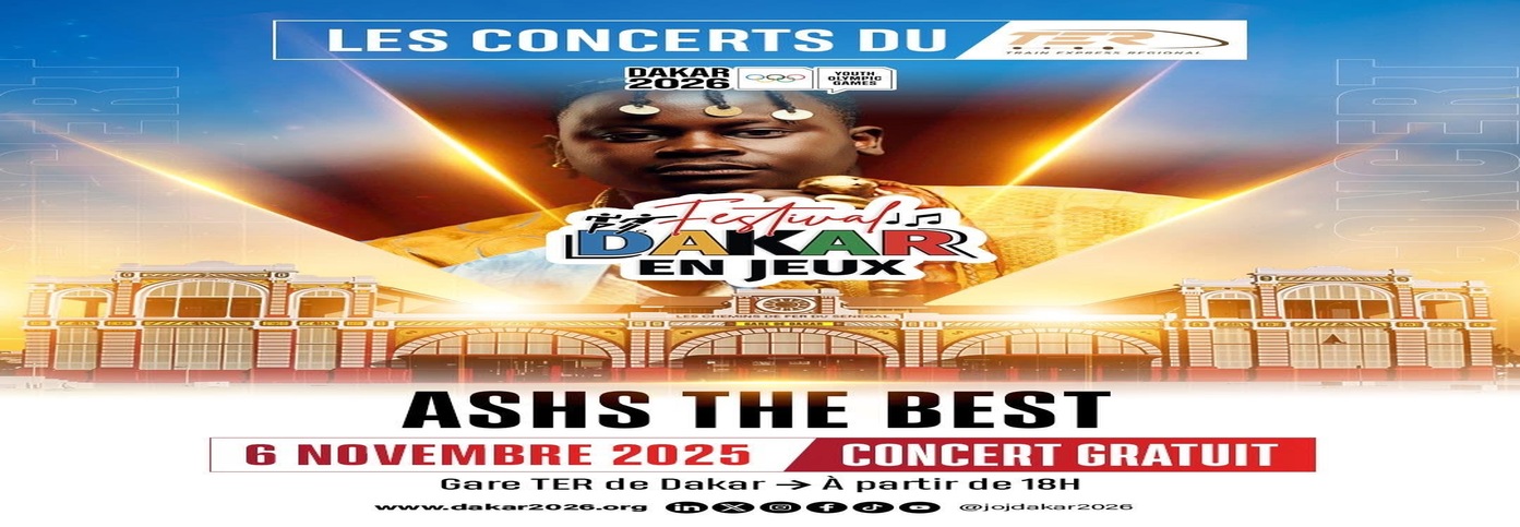 Le talentueux Ashs The Best enflamme la Gare TER de Dakar le jeudi 6 novembre 2025 à 18h, lors d’un concert gratuit organisé dans le cadre des Jeux Olympiques de la Jeunesse Dakar 2026. Un show vibrant pour célébrer la jeunesse, la musique et la créativité sénégalaise !