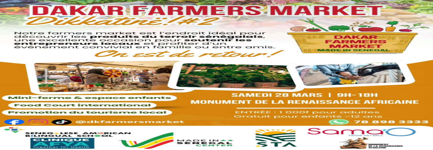 La deuxième édition du Dakar Farmers Market se tiendra le samedi 28 mars 2026 au Monument de la Renaissance africaine, avec une journée dédiée aux produits locaux et aux initiatives « Made in Senegal ».