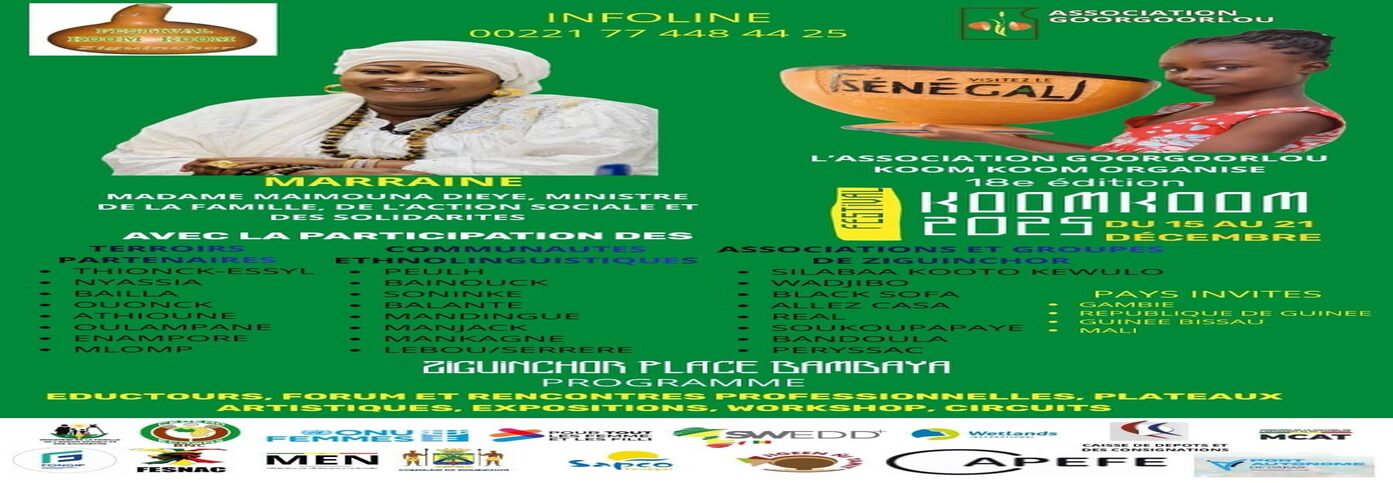 L’association Goorgoorlou est heureuse d’annoncer le Festival Koom Koom, 18ᵉ édition, du 15 au 21 décembre 2025 à Ziguinchor.