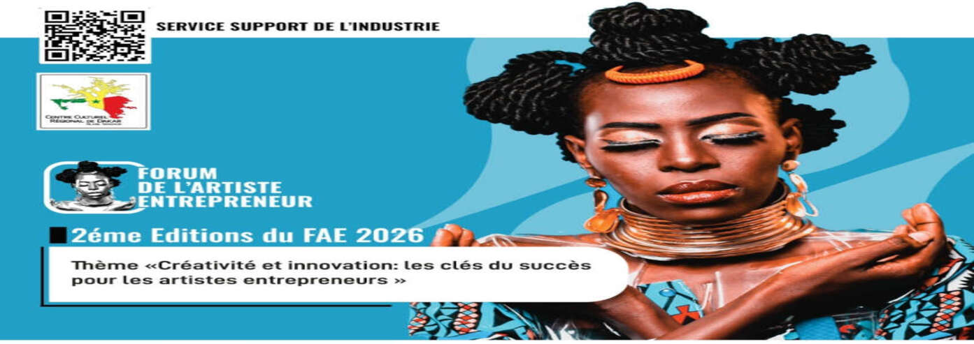 Du 23 au 25 avril 2026, le Centre culturel régional Blaise Senghor accueille la 2ᵉ édition du Forum de l’artiste entrepreneur (FAE), un rendez-vous majeur dédié aux industries culturelles et créatives au Sénégal.